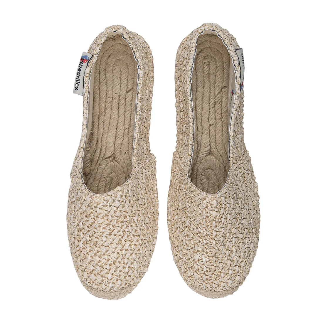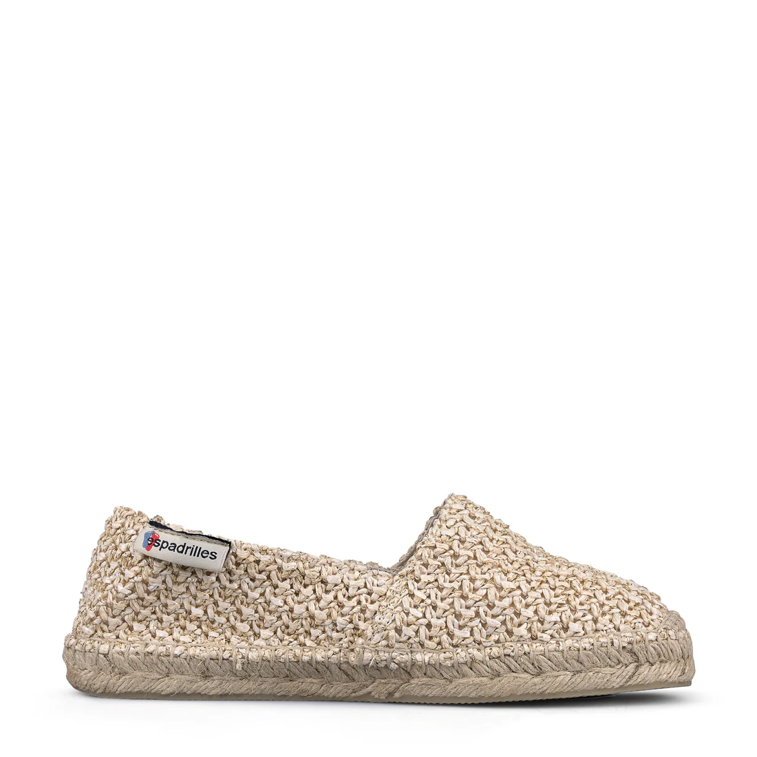Modello slip on con punta in juta e cuciture in filo di juta